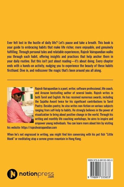 Ever felt lost in the hustle of daily life? Let's pause and take a breath. This book is your guide to embracing habits that make life richer, more enjoyable, and genuinely fulfilling. Through personal tales and relatable experiences, Rajesh Vairapandian walks you through each habit, offering insights and practices that help anchor them in your daily routine. But this isn't just about reading-it's about doing. Every chapter ends with a hands-on activity, nudging you to experience the beauty of these habits firsthand. Dive in, and rediscover the magic that's been around you all along.