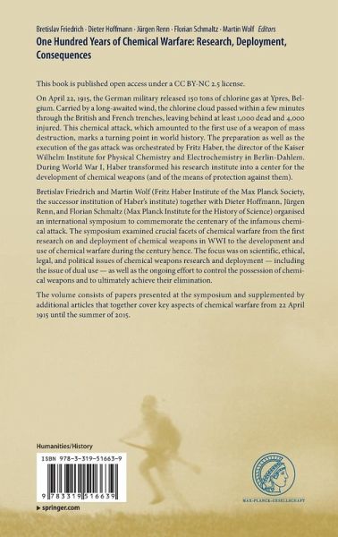 The volume consists of papers presented at the symposium and supplemented by additional articles that together cover key aspects of chemical warfare from 22 April 1915 until the summer of 2015.