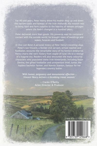 For 40 odd years, Peter Henry drove his mobile shop up and down the narrow roads and byways of the Irish midlands. His mission was to bring food and farm supplies to the hearths of remote cottages where life hadn't changed in a hundred years. Peter delivered more than goods. His presence was his customers' contact with the outside world; he brought news of weddings and wakes, funerals and football. In One Last Bend; A personal history of Peter Henry's travelling shop, Peter's son Vincent, a former civil servant, school teacher and footballer, recounts the remarkable story of his family's enterprise. Henry charts the van's history from staple of rural life to a vestige of a bygone era. Readers will also encounter the many colourful characters who populated these Irish hinterlands; including Razor Devine, the gifted footballer and unrepentant thief; Junior, the hapless bachelor farmer; and Nannie Stanton, famous for her legendary country butter. Vincent's recollections accompanying his father in their travelling shop reminds us of the life and times of rural Ireland in a bygone age. Mr. Brian Cowen - former Taoiseach of Ireland With humor, poignancy , and monumental affection for the people of Clara and its environs, Vincent Henry delivers a throbbing travel memoir ... As travel memoirs go , it does not aspire towards the Taj Mahal or the Pyramids or any of the world's seven wonders. Instead it reveals the world's eight wonder: the grit and charm of a vibrant community. Mr. Ciarán O'Reilly - Actor, Playwright and Inductee of the 'Irish America Hall of Fame' This lovely book brilliantly captures a world that no longer exists. The 'Van' passed along the High Road in Durrow where we lived and was an essential part of the life of the community. In One Last Bend, Vincent Henry has produced no mere work of nostalgia; it offers a vivid insight into the social history of the midlands in the decades after World War II, when everything began to change, and then continued to change very quickly. Professor Paul Rouse - UCD School of History