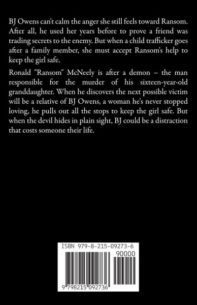 BJ Owens can't calm the anger she still feels toward Ransom. After all, he used her years before to prove a friend was trading secrets to the enemy. But when a child trafficker goes after a family member, she must accept Ransom's help to keep the girl safe. Ronald "Ransom" McNeely is after a demon - the man responsible for the murder of his sixteen-year-old granddaughter. When he discovers the next possible victim will be a relative of BJ Owens, a woman he's never stopped loving, he pulls out all the stops to keep the girl safe. But when the devil hides in plain sight, BJ could be a distraction that costs someone their life.