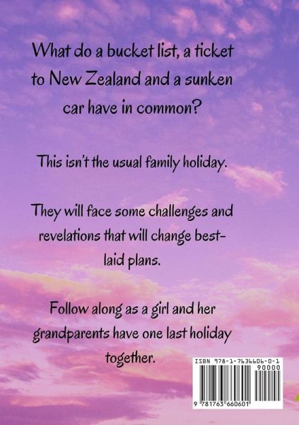 What do a bucket list, a ticket to New Zealand and a sunken car have in common? This isn't the usual family holiday. They will face some challenges and revelations that will change best-laid plans. Follow along as a girl and her grandparents have one last holiday together. ******* The adventure within this book may be a real one the author went on in her youth but that doesn't mean it's not a fun one. There has been limited editing to keep the authenticity of the original journal written while on holiday. The idea was to share this journey with the family but others expressed a desire to read it so it's gone wide. There is a mention of cancer, sickness and treatment but it is not tha main point of the story. The format is journal entry with hand-drawn images but don't let that scare you away from the adventure that awaits.