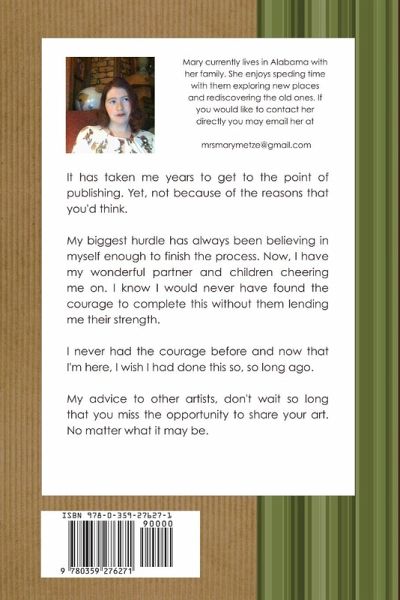 This is a collection of original poetry by Mary Metze. This is her first interactive book of poetry of this nature. Poems are not intended for sensitive readers and should be read with an open mind.
