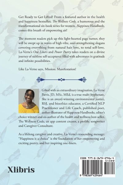 Get Ready to Get Lifted! From a featured author in the health and happiness bestseller, The Wellness Code, a humorous and the transformational six-book series for women, Happiness Handbooks, comes this breath of empowering air! The moment readers pick up this light-hearted page turner, they will be swept up in waves of high-vibe, soul-strengthening slogans covering everything from natural hair love, to total self-love. La-Verne's One Liners and Power Poetry takes readers on a divine journey of sublime self-acceptance filled with adventures in gratitude and infinite possibilities. Like La-Verne says, Mission: Manifestation!