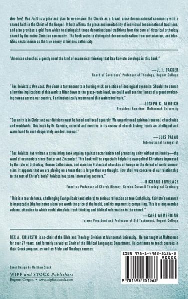 One Lord, One Faith is a plea and plan to re-envision the Church as a broad, cross-denominational community with a shared faith in the Christ of the Gospel. It both affirms the place and inevitability of individual denominational traditions, and also provides a grid from which to distinguish those denominational traditions from the core of historical orthodoxy shared by the entire Christian community. The book seeks to distinguish denominationalism from sectarianism, and identifies sectarianism as the true enemy of historic catholicity.