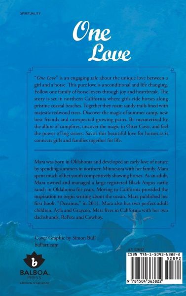 "One Love" is an engaging tale about the unique love between a girl and a horse. This pure love is unconditional and life changing. Follow one family of horse lovers through joy and heartbreak. The story is set in northern California where girls ride horses along pristine coastal beaches. Together they roam sandy trails lined with majestic redwood trees. Discover the magic of summer camp, new best friends and unexpected growing pains. Be mesmerized by the allure of campfires, uncover the magic in Otter Cove, and feel the power of big sisters. Savor this beautiful love for horses as it connects girls and families together for life.