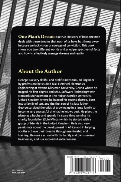 One Man's Dream talks about those dreams each of us have and throw away because of a lack of conviction. It also talks about the differences between Europe and Africa and the contracts between both continent's culture.