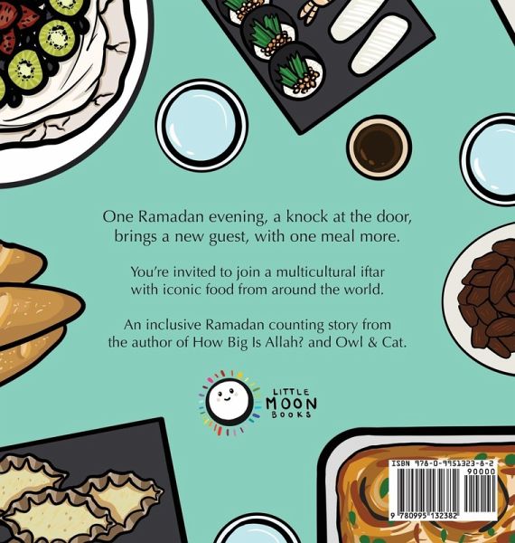 One Ramadan evening, a knock at the door, brings a new guest, with one meal more. You're invited to join a multicultural iftar meal celebrating the Muslim month of Ramadan, with iconic food from around the world. An inclusive Ramadan counting story from the best-selling author of How Big Is Allah? and Owl & Cat. Join a diverse group of Muslim women for a meal celebrating the Islamic month of Ramadan. Meals from the Middle East, Asia, Africa, the Americas, and Europe. From best-selling children's book author Emma Apple and the Indie Muslim and Mainstream Children's Book publisher Little Moon Books. Topics of interest: Muslim children's books, Islamic children's books, Ramadan children's books, Holiday children's books, Eid children's books, Cultural food for children, Diverse books for children, Books about Islam, Books about Ramadan, Books about Muslims.