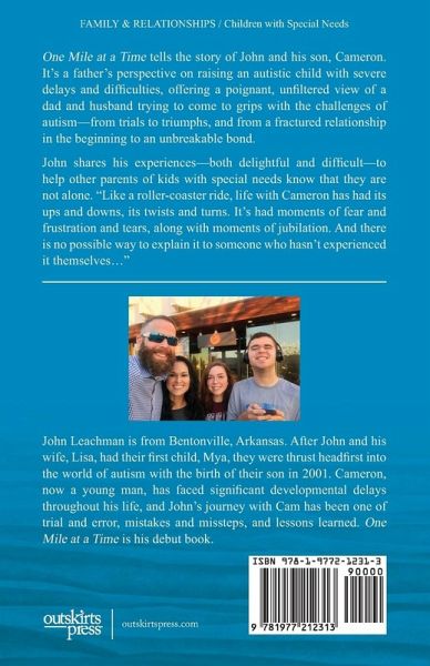 One Mile at a Time tells the story of John and his son, Cameron. It's a father's perspective on raising an autistic child with severe delays and difficulties, offering a poignant, unfiltered view of a dad and husband trying to come to grips with the challenges of autism-from trials to triumphs, and from a fractured relationship in the beginning to an unbreakable bond. John shares his experiences-both delightful and difficult-to help other parents of kids with special needs know that they are not alone. "Like a roller-coaster ride, life with Cameron has had its ups and downs, its twists and turns. It's had moments of fear and frustration and tears, along with moments of jubilation. And there is no possible way to explain it to someone who hasn't experienced it themselves…"