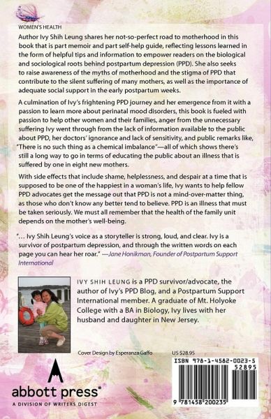 Author Ivy Shih Leung shares her not-so-perfect road to motherhood in this book that is part memoir and part self-help guide, reflecting lessons learned in the form of helpful tips and information to empower readers on the biological and sociological roots behind postpartum depression (PPD). She also seeks to raise awareness of the myths of motherhood and the stigma of PPD that contribute to the silent suffering of many mothers, as well as the importance of adequate social support in the early postpartum weeks. A culmination of Ivy’s frightening PPD journey and her emergence from it with a passion to learn more about perinatal mood disorders, this book is fueled with passion to help other women and their families, anger from the unnecessary suffering Ivy went through from the lack of information available to the public about PPD, her doctors’ ignorance and lack of sensitivity, and public remarks like, "There is no such thing as a chemical imbalance"—all of which shows there’s still a long way to go in terms of educating the public about an illness that is suffered by one in eight new mothers. With side effects that include shame, helplessness, and despair at a time that is supposed to be one of the happiest in a woman’s life, Ivy wants to help fellow PPD advocates get the message out that PPD is not a mind-over-matter thing, as those who don’t know any better tend to believe. PPD is an illness that must be taken seriously. We must all remember that the health of the family unit depends on the mother’s well-being. "… Ivy Shih Leung’s voice as a storyteller is strong, loud, and clear. Ivy is a survivor of postpartum depression, and through the written words on each page you can hear her roar." —Jane Honikman, Founder of Postpartum Support International