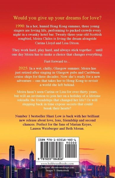Tthe BRAND-NEW page-turner from the #1, multi-million copy Bestselling Author Shari Low Would you give up your dreams for love? 1990: In a hot, humid Hong Kong summer, three young singers are loving life, performing to packed crowds every night in a swanky hotel bar. Twenty-three-year-old Scottish songbird, Moira Chiles is living the dream alongside Carina Lloyd and Lisa Dixon. They work hard, play hard, and always stick together... until one day Moira has to make a choice that changes everything. Fast forward to... 2025: In a wet, chilly, Glasgow summer, Moira has just retired after singing in Glasgow pubs and Caribbean cruise ships for three decades. Now she's ready for a new adventure - one that takes her to Hong Kong to revisit a world she left behind. Moira hasn't seen Carina or Lisa for over thirty years, but will an invitation to join her on a holiday of a lifetime rekindle the friendships that changed her life? Or will stepping back in time expose secrets that could break their hearts? #1 bestseller Shari Low is back with her brilliant new release about love, loss, friendship and second chances. Perfect for the fans of Marian Keyes, Lauren Weisberger and Beth Moran.