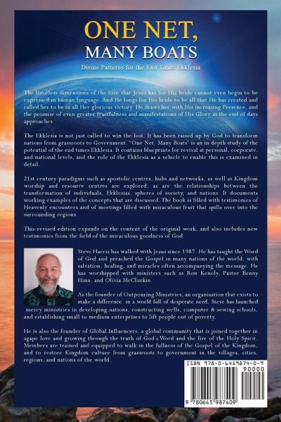 The limitless dimensions of the love that Jesus has for His bride cannot even begin to be expressed in human language. And He longs for His bride to be all that He has created and called her to be in all Her glorious victory. He draws her with His increasing Presence, and the promise of even greater fruitfulness and manifestations of His Glory as the end of days approaches. The Ekklesia is not just called to win the lost. It has been raised up by God to transform nations from grassroots to Government. "One Net, Many Boats" is an in depth study of the potential of the end times Ekklesia. It contains blueprints for revival at personal, corporate, and national levels, and the role of the Ekklesia as a vehicle to enable this is examined in detail. 21st century paradigms such as apostolic centres, hubs and networks, as well as Kingdom worship and resource centres are explored; as are the relationships between the transformation of individuals, Ekklesias, spheres of society, and nations. It documents working examples of the concepts that are discussed. The book is filled with testimonies of Heavenly encounters and of meetings filled with miraculous fruit that spills over into the surrounding regions. This REVISED EDITION expands on the content of the original work, and also includes new testimonies from the field of the miraculous goodness of God.