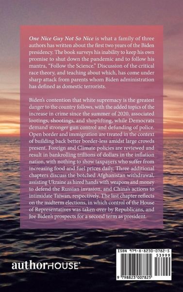 This book surveys President Biden's first two years in the White House. It examines first why he hasn't been able to keep his promise to stop the pandemic and to follow always his mantra "Follow the Science." Then there is discussion of the importance of critical thinking and examines how race was incorporated into it to generate the critical race theory the teaching of which in schools and colleges has come under sharp attack from parents whom his administration has termed domestic terrorists. His contention that white supremacy is the greatest danger to the country follows, with the added topics of the increase in crime since summer of 2020, associated looting, shooting and shop lifting and Democrats demand for better gun control and defunding of police. Open border and immigration is treated in the context of building back better border-less with the huge crowds there. After that we review the domestic policy, foreign policy, and climate policy, all of which has resulted in bankrolling trillions of dollars in the inflation nation with nothing to show the taxpayer who is suffering from increasing food and fuel prices daily. Three following chapters discuss the botched Afghanistan withdrawal, assisting Ukraine as hired hands with weapons and money to defend the Russian invasion, and China's actions to take control of Taiwan, respectively. The last chapter is about midterm elections in which control of the House of Representatives was taken over by Republicans and the prospects for completing two terms as president.