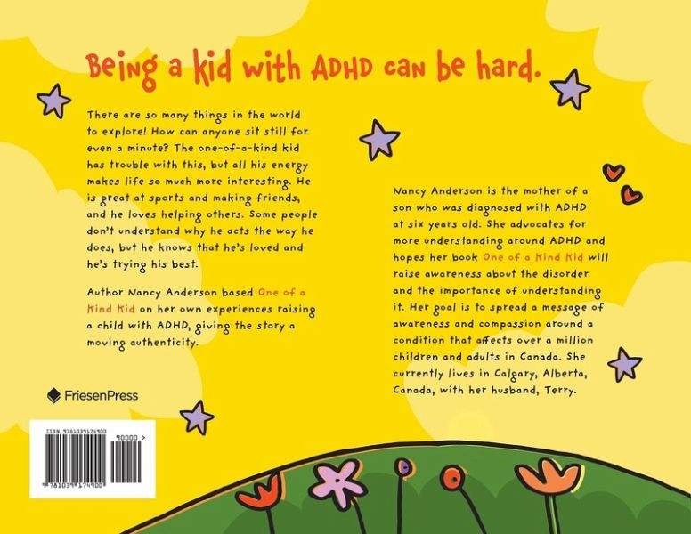Nancy Anderson is the mother of a son who was diagnosed with ADHD at six years old. She advocates for more understanding around ADHD and hopes her book One of a Kind Kid will raise awareness about the disorder and the importance of understanding it. Her goal is to spread a message of awareness and compassion around a condition that affects over a million children and adults in Canada. She currently lives in Calgary, Alberta, Canada, with her husband, Terry.