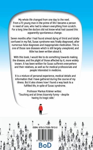 My whole life changed from one day to the next. From a fit young man in the prime of life I became a person in need of care, who had to relearn everything from scratch. For a long time the doctors did not know what had caused this apparently spontaneous change.Seven months after I had found almost dying of thirst and totally confused in my flat, Susac syndrome was finally diagnosed, after numerous false diagnoses and inappropriate medication. This is one of those rare diseases which is still largely unexplored, and little has been written about it.With this book, I would like to do something towards making the disease, and the plight of those affected by it, more widely known. It has been written for Susac sufferers everywhere and their relatives, as well as for medical professionals and people interested in medicine.It is a mixture of personal experience, medical details and information that I have gathered during the course of my illness. But it also shows how I found a way back to a fulfilled life, in spite of Susac syndrome.Professor Markus Krämer writes:'Touching and at times bizarrely funny - despite having its tragic side.'