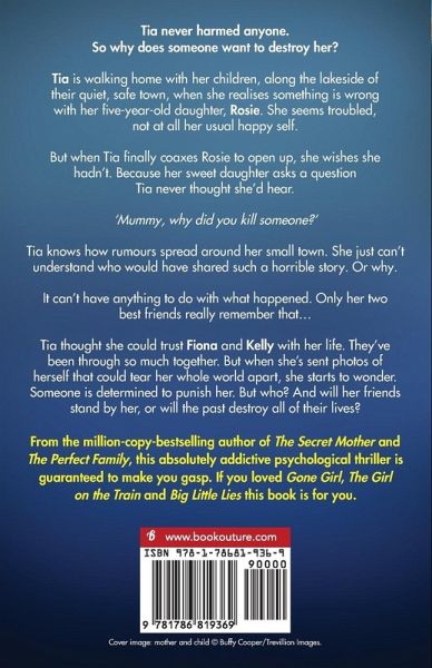 Tia never harmed anyone. So why does someone want to destroy her? Tia is walking home with her children, along the lakeside of their quiet, safe town, when she realises something is wrong with her five-year-old daughter, Rosie. She seems troubled, not at all her usual happy self. But when Tia finally coaxes Rosie to open up, she wishes she hadn’t. Because her sweet daughter asks a question Tia never thought she’d hear. ‘Why did you kill someone?’ Tia knows how rumours spread around her small town. She just can’t understand who would have shared such a horrible story. Or why. It can’t have anything to do with what happened. Only her two best friends really remember that… Tia thought she could trust Fiona and Kelly with her life. They’ve been through so much together. But when she’s sent photos of herself that could tear her whole world apart, she starts to wonder. Someone is determined to punish her. But who? And will her friends stand by her, or will the past destroy all of their lives? From the million-copy-bestselling author of The Secret Mother and The Perfect Family, this absolutely addictive psychological thriller is guaranteed to make you gasp. If you loved Gone Girl, The Girl on the Train and Big Little Lies this book is for you. See what readers are saying about One of Us Is Lying: ‘Totally mesmerizing! I literally had to pick my jaw up off the floor… had my heart pounding so hard I thought it would burst! Totally amazing and brilliant!… a definite must-read author!’ Goodreads Reviewer, ¿¿¿¿¿ ‘Fantastic, suspenseful… so, so good. I really didn’t want to put the book down and finished it in one day.’ Goodreads Reviewer, ¿¿¿¿¿ ‘That ending, wow!!!!!… couldn’t get the book out of my head. I wanted more… 5 Hearts ¿¿¿¿¿¿¿¿¿¿’ Goodreads Reviewer, ¿¿¿¿¿ ‘Shalini Boland is a fantastic author! She captivates you from the beginning and yes, it was another late, late night! But so worth it!!’ Goodreads Reviewer, ¿¿¿¿¿ ‘Another stunner… 5 stars all the way from beginning which hooked me to the very last page… I already want more!!!’ Goodreads Reviewer, ¿¿¿¿¿ ‘Wow… thrilling… worth each and every minute’ NetGalley Reviewer, ¿¿¿¿¿ ‘Shalini Boland fires out another top read!… unputdownable… What more can I say but – RECOMMEND!’ Goodreads Reviewer, ¿¿¿¿¿ ‘WOW!… addictive… it takes off like a rocket! I didn’t just read this mesmerizing book, I inhabited it.’ Bookpreneur, ¿¿¿¿¿