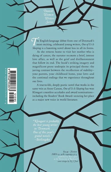 "The English-language debut from one of Denmark's most exciting, celebrated young writers, One of Us Is Sleeping is a haunting novel about loss in all its forms. As she returns home to visit her mother who is dying of cancer, the narrator recounts a brief, intense love affair, as well as the grief and disillusionment that follow its end. The book's striking imagery and magnificent prose underpin its principal theme: the jarring contrast between the recollection of stability--your parents, your childhood home, your love--and the continual endings that we experience throughout our lives. A true-to-life, deeply poetic novel that works in the same vein as Anne Carson, One of Us Is Sleeping has won Klougart countless accolades and award nominations--includingthe Readers' Book Award--securing her place as a major new voice in world literature"--
