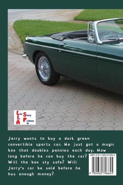 "It's a magic box. If you put a penny in the box and don't take any out, they will double each day," Joe tells Jerry. "If the penny doubles each day," wonders Jerry, "how long will it take to buy a dark green convertible sports car?" Will Jerry be able to keep the pennies in the box until it is enough? Or, will he spend it on something smaller. This exciting tale shows the power of doubling. Available in: * Standard Edition * Large Print Edition * Dyslexic's Edition