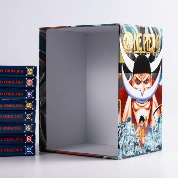 Der sechste von vielen schicken Sammelschubern beinhaltet die Bände 54 bis 61 des beliebtesten Manga der Welt: ONE PIECE! Das ideale Starter-Set (und Geschenk) für Fans der Piratenserie und all jene, die es werden wollen!