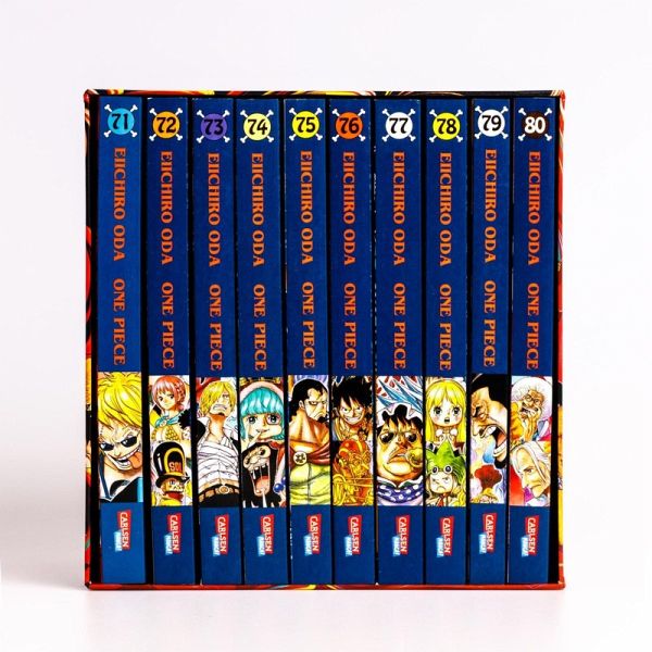Der achte von vielen schicken Sammelschubern beinhaltet die Bände 71 bis 80 des beliebtesten Manga der Welt: ONE PIECE! Das ideale Starter-Set (und Geschenk) für Fans der Piratenserie und all jene, die es werden wollen! Erlebe die Geschichte des zukünftigen Königs der Piraten in einer unvergleichlichen Geschichte voller Action, Abenteuer, Dramatik, Freundschaft und Humor. Mit über 500 Millionen verkauften Bänden weltweit ist One Piece die meistverkaufte Mangaserie der Geschichte! Monkey D. Ruffy ist ein kleiner Junge, der gerne Pirat werden würde. Leider nützt ihm auch eine Mutprobe nichts. Solange er nicht schwimmen kann, muss er zu Hause bleiben. Doch als er den Piraten die geheime Frucht des Meeres, auch Teufelsfrucht oder Gum-Gum-Frucht genannt, klaut und zum Nachtisch verspeist, ändert sich alles... Für Fans von Naruto, Dragon Ball, My Hero Academia und Fairy Tail! Weitere Infos: - Anime-Serie bei Crunchyroll, Netflix und ADN - bisher 14 Anime-Kinofilme - Live-Action-Netflixserie 2. Staffel geplant - diverse Videospiele - ab 10 Jahren