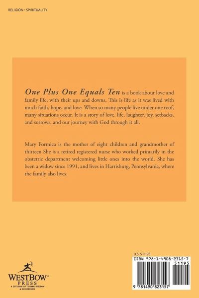 One Plus One Equals Ten is a book about love and family life, with their ups and downs. This is life as it was lived with much faith, hope, and love. When so many people live under one roof, many situations occur. It is a story of love, life, laughter, joy, setbacks, and sorrows, and our journey with God through it all.