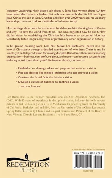 Visionary Leadership. Many people talk about it. Some have written about it. A few have been called visionary leaders. But only one man embodied its full meaning-Jesus Christ, the Son of God. Crucified and risen over 2,000 years ago, his visionary leadership continues to draw multitudes of followers today. Most writings about Jesus focus on what he did-proclaim the kingdom of God-and why-to save the world from its sin-but have neglected how he did it. How did his vision for establishing the Christian faith become so successful? How has Christianity lasted longer and grown larger than any other organization in history? In his ground breaking work "One Plus Twelve," Lee Bartolomei delves into the how of Christianity through a detailed examination of who Jesus Christ is and his simple, yet multi-layered vision for making disciples. Bartolomei then shows how any organization-business, non-profit, religious, and more-can become successful and enduring in just three short years! Bartolomei shows you how to: ¿ Establish core ideology, values, and purpose that make up a vision ¿ Find and develop like-minded leadership who can carry out a vision ¿ Confront the brutal facts that hinder a vision ¿ Develop a culture of discipline to continue a vision ...and much more!