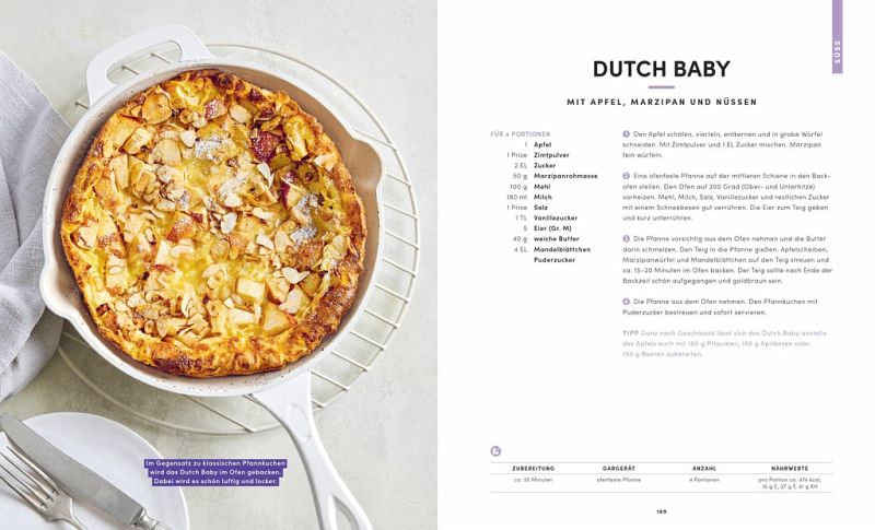 Aufgeteilt ist das Buch in fünf Kapitel: In "Alles mit Fleisch" kommen Fleischliebhaber:innen mit Schmorgerichten wie Rinderrouladen mit Knödeln oder Hähnchenkeulen mit Blattspinat und weißen Bohnen voll auf ihre Kosten. Im Kapitel "Alles mit Fisch" gesellen sich Meeresfrüchte zur Nudelpaella und Räucherlachs zur Lauchquiche. Im Kapitel "Alles veggie" und "Alles vegan" zeigen Rezepte wie Spinat-Shakshuka, Auberginen-Lasagne und Kartoffel-Wirsing-Eintopf: Je mehr frisches Gemüse in die Pfanne, den Topf oder im Ofen landet, desto besser! Das Kapitel "Alles Süss" rundet die Auswahl mit Gerichten wie Kokos-Milchreis und Heidelbeer-Cheesecake ab und beweist, dass auch Kuchen und Desserts nur einen "Pot" benötigen, um superlecker zu sein! Mit hilfreichen Tipps & Tricks Wie genial einfach die One-Pot-Küche ist, zeigt "One Pot - Das Buch" mit detaillierten Schritt-für-Schritt-Anleitungen und zahlreichen Tipps und Tricks. Ganz zu Beginn vermittelt zudem ein "Basics"-Kapitel nützliche Informationen darüber, welches Gargerät sich für welches Gericht am besten eignet und welche Zutaten das One-Pot-Erlebnis zum Hochgenuss machen.