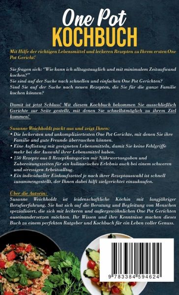 One Pot Kochbuch von Susanne Weichholdt: 150 Rezepte für schnelle, einfache und köstliche MahlzeitenWillkommen in der Welt der One Pot Gerichte - der revolutionären Methode, um köstliche Mahlzeiten mit minimalem Aufwand zu zaubern! Das "One Pot Kochbuch" von Susanne Weichholdt ist Ihr unverzichtbarer Begleiter für die schnelle, einfache und geschmackvolle Küche. Perfekt für Berufstätige, Familien, Camping-Liebhaber, Küchenneulinge und alle, die den Genuss von vielfältigen, gesunden Mahlzeiten schätzen.Für die Zeitbewussten und Berufstätigen:Nach einem anstrengenden Arbeitstag wünschen Sie sich ein schnelles, aber dennoch köstliches Essen? Dieses Buch bietet Ihnen 150 One-Pot-Rezepte, die perfekt für Ihren geschäftigen Lebensstil sind. Erleben Sie, wie einfach es ist, mit nur einem Topf gesunde und schmackhafte Gerichte zuzubereiten.Familienfreundliche Rezepte:Möchten Sie Ihre Familie mit vielfältigen und leckeren Mahlzeiten verwöhnen? Diese Sammlung von kinderfreundlichen und einfach zuzubereitenden Rezepten wird alle am Familientisch begeistern.Outdoor-Abenteurer aufgepasst:Lieben Sie Camping und Outdoor-Aktivitäten? Entdecken Sie, wie Sie mit nur einem Topf und einigen einfachen Zutaten auch unterwegs köstliche Mahlzeiten zaubern können.Einfach und Einsteigerfreundlich:Keine Sorge, wenn Sie neu in der Küche sind. Die Rezepte in diesem Buch sind unkompliziert und leicht nachzukochen, ideal für diejenigen, die ihre Kochfähigkeiten verbessern möchten.Gesund und Bewusst:Für Gesundheitsbewusste bietet dieses Buch Rezepte mit Nährwertangaben, die eine ausgewogene Ernährung unterstützen. Genießen Sie leckere, nahrhafte Mahlzeiten ohne schlechtes Gewissen.Vielfalt und Geschmack:Entdecken Sie die breite Palette an Rezepten - von Pasta und Reisgerichten über Suppen, Fleisch, Fisch bis hin zu vegetarischen, veganen, Low Carb und asiatischen Optionen. Dieses Buch bringt Abwechslung und Freude in Ihre tägliche Küche.Kaufen Sie jetzt dieses "One Pot Kochbuch" und erleben Sie, wie einfach und lecker das Kochen sein kann!