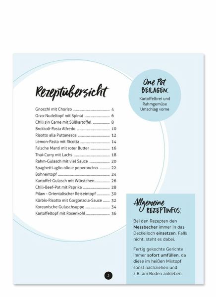 Alles im Mixtopf gekocht - schnell, einfach und köstlich! Mach es dir leicht: Alle Zutaten in den Mixtopf geben, den Thermomix kochen lassen und entspannen! Während sich die Aromen perfekt entfalten, hast du Zeit, die Küche aufzuräumen, den Tisch zu decken oder einfach den Moment zu genießen. Freu dich auf eine große Auswahl an herzhaften Fleisch- und Fischgerichten, cremigen Pasta- und Reisgerichten sowie raffinierten vegetarischen Rezepten - alle mit minimalem Aufwand zubereitet und voller Geschmack. Lass dich inspirieren und entdecke, wie einfach und köstlich die One-Pot-Küche sein kann! Perfekt für alle, die gerne genießen, aber nicht lange in der Küche stehen wollen. Schnell kochen und stressfrei genießen. Los geht¿s! Die Rezepte sind für alle Thermomix-Modelle geeignet.