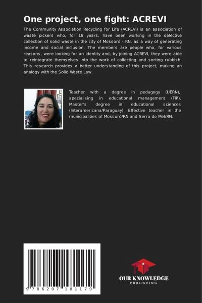 The Community Association Recycling for Life (ACREVI) is an association of waste pickers who, for 18 years, have been working in the selective collection of solid waste in the city of Mossoró - RN, as a way of generating income and social inclusion. The members are people who, for various reasons, were looking for an identity and, by joining ACREVI, they were able to reintegrate themselves into the work of collecting and sorting rubbish. This research provides a better understanding of this project, making an analogy with the Solid Waste Law.