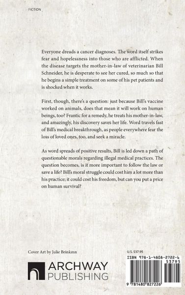 Everyone dreads a cancer diagnoses. The word itself strikes fear and hopelessness into those who are afflicted. When the disease targets the mother-in-law of veterinarian Bill Schneider, he is desperate to see her cured, so much so that he begins a simple treatment on some of his pet patients and is shocked when it works. First, though, there’s a question: just because Bill’s vaccine worked on animals, does that mean it will work on human beings, too? Frantic for a remedy, he treats his mother-in-law, and amazingly, his discovery saves her life. Word travels fast of Bill’s medical breakthrough, as people everywhere fear the loss of loved ones, too, and seek a miracle. As word spreads of positive results, Bill is led down a path of questionable morals regarding illegal medical practices. The question becomes, is it more important to follow the law or save a life? Bill’s moral struggle could cost him a lot more than his practice; it could cost his freedom, but can you put a price on human survival?