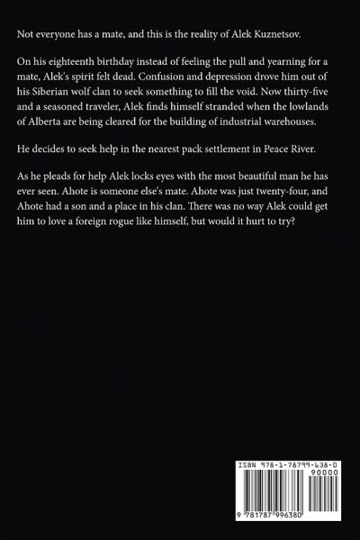 Not everyone has a mate, and this is the reality of Alek Kuznetsov. On his eighteenth birthday instead of feeling the pull and yearning for a mate, Alek's spirit felt dead. Confusion and depression drove him out of his Siberian wolf clan to seek something to fill the void. Now thirty-five and a seasoned traveler, Alek finds himself stranded when the lowlands of Alberta are being cleared for the building of industrial warehouses. He decides to seek help in the nearest pack settlement in Peace River. As he pleads for help Alek locks eyes with the most beautiful man he has ever seen. Ahote is someone else's mate. Ahote was just twenty-four, and Ahote had a son and a place in his clan. There was no way Alek could get him to love a foreign rogue like himself, but would it hurt to try?