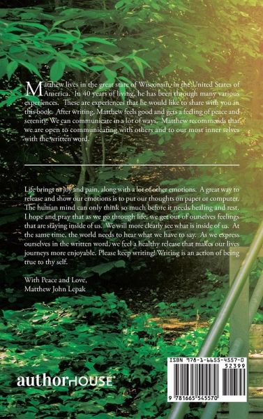 Life brings us joy and pain, along with a lot of other emotions. A great way to release and show our emotions is to put our thoughts on paper or computer. The human mind can only think so much before it needs healing and rest. I hope and pray that as we go through life, we get out of ourselves feelings that are staying inside of us. We will more clearly see what is inside of us. At the same time, the world needs to hear what we have to say. As we express ourselves in the written word, we feel a healthy release that makes our lives journeys more enjoyable. Please keep writing! Writing is an action of being true to thy self. With Peace and Love, Matthew John Lepak