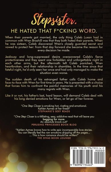 Stepsister. He hated that f*cking word. When their parents got married, the only thing Caleb Luxan had in common with Wren Brashill was that they both hated their parents. When he was sixteen, Caleb discovered Wren's closely guarded secret and vowed to protect her: from that day forward she became the reason for every decision he made. Jealousy and long-suppressed desire overpowered Caleb's fierce protectiveness and they spent one forbidden and unforgettable night in each other arms, but the aftermath left Caleb panicked, Wren heartbroken, and their relationship in shambles. In the time since that fateful night, he'd only seen her once and had only managed to make the situation even worse. The sudden death of his estranged father calls Caleb home and face-to-face with Wren for first time in years. He is presented with a choice that forces him to confront the painful memories of his youth and his many regrets with Wren. Like it or not, his father's last, hard lesson, will demand Caleb deal with his long denied emotions for Wren, or let go of her forever.
