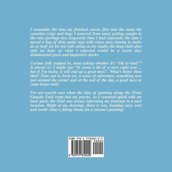 Summer of 2022 was spent plein-air painting along my local segment of the Trans Canada Trail, throughout the Ottawa-Gatineau region. I'm not exactly sure when the idea of painting along the Trans Canada Trail crept into my psyche. As I ventured afield with my back pack, the Trail was always informing my footsteps to a next location. Right at my doorstep, there it was, heading east, west and north: what a fitting theme for a season's painting! "David Kearn is a magician. As these paintings demonstrate, he can make the ordinary radiate light, colour and texture. David finds and nourishes the vision, talent and courage that lie within everyone who picks up a paintbrush. This book is a great way to share the infectious enthusiasm and imagination that is David's approach to art." Ann Chaplin "David takes his readers on a journey and invites them to look over his shoulder as he paints. He has the ability to take a scene and distill it to its essence, all the while retaining a sense of place. David's unique and engaging style, coupled with his entertaining sense of humour, make this book an inspiring and interesting read." Susan Guirey-Pierce "David Kearn never ceases to amaze. He is full of creative energy and passion for his projects. It was evident from the start that this one, about the Trans Canada Trail would be a challenge. But persevere he did, producing canvases and a book as magical and as colourful as Canada itself." Barbara Dundass