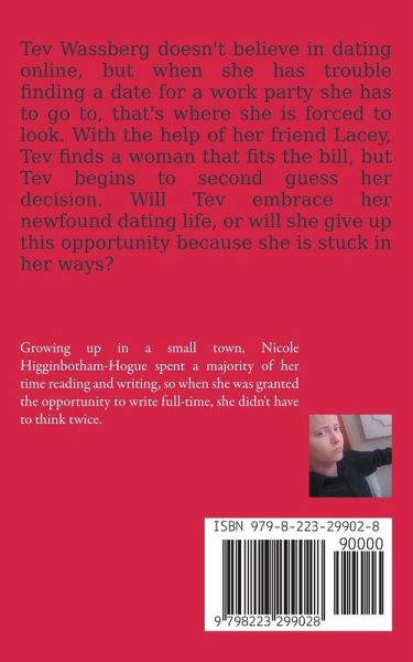 Tev Wassberg doesn't believe in dating online, but when she has trouble finding a date for a work party she has to go to, that's where she is forced to look. With the help of her friend Lacey, Tev finds a woman that fits the bill, but Tev begins to second guess her decision. Will Tev embrace her newfound dating life, or will she give up this opportunity because she is stuck in her ways?