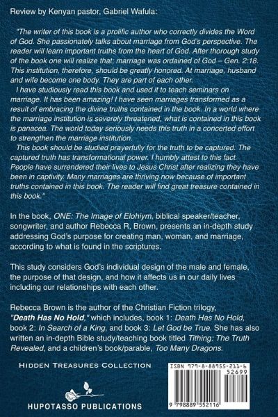 This book is about God's creation of mankind and marriage. It takes an in-depth look at how the male and female are meant to be the image of God and why that image requires both the man and woman. It is a study involving His purpose for creating mankind, his individual design of the male and female, his purpose for the way he designed them (wired them), and their need and purpose for each other. It considers both the physical design and the spiritual, and how this, along with God's original purpose, affects our daily lives in every way, including our relationships with each other. Many issues that men and women deal with throughout their lives, that may often be considered non-spiritual, are addressed in light of the scriptures, shedding light on the spirituality and importance of all aspect of our lives. It is a book of information and discovery.