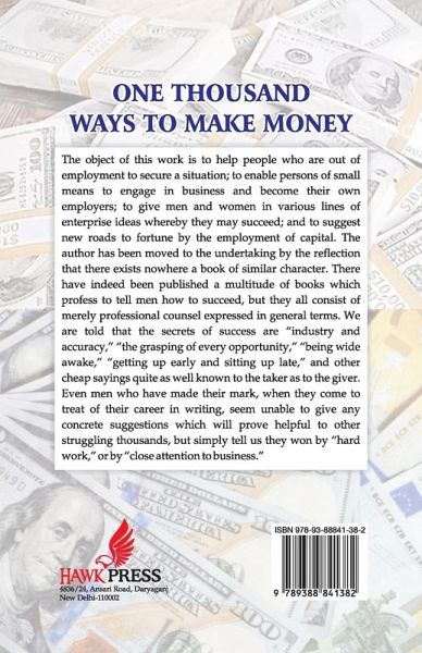 The object of this work is to help people who are out of employment to secure a situation; to enable persons of small means to engage in business and become their own employers; to give men and women in various lines of enterprise ideas whereby they may succeed; and to suggest new roads to fortune by the employment of capital. The author has been moved to the undertaking by the reflection that there exists nowhere a book of similar character. There have indeed been published a multitude of books which profess to tell men how to succeed, but they all consist of merely professional counsel expressed in general terms. We are told that the secrets of success are "industry and accuracy," "the grasping of every opportunity," "being wide awake," "getting up early and sitting up late," and other cheap sayings quite as well known to the taker as to the giver. Even men who have made their mark, when they come to treat of their career in writing, seem unable to give any concrete suggestions which will prove helpful to other struggling thousands, but simply tell us they won by "hard work," or by "close attention to business."