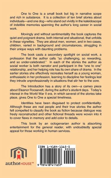 One to One is a small book but big in narrative scope and rich in substance. It is a collection of ten brief stories about individuals-and one dog-who stand out vividly in the kaleidoscope of indelible memories spanning the author's long career in social work. Movingly and without sentimentality the book captures the quiet and poignant drama, both internal and situational, that unfolds in these vignettes. They are about men, women, and in two cases, children, varied in background and circumstances, struggling in their unique ways with daunting problems. The book casts a secondary spotlight on social work, a profession that the author calls "so challenging, so rewarding, and so under-celebrated." In each of the stories the author as social worker is both narrator and participant in the "one to one" relationship, and her helping role has its own share of drama. In the earlier stories she effectively recreates herself as a young woman, enthusiastic in her profession, learning to discipline her feelings lest they intrude unprofessionally in situations that stir her to the core. The introduction has a story of its own-a cameo piece about Eleanor Roosevelt, during the author's student days. Today's interest in the World War II era, in which several of the stories take place, gives One to One a special timeliness. Identities have been disguised to protect confidentiality. Although these are real people and their true stories the author felt compelled to classify the book as fiction because dialogue was freely reconstructed and other fictional threads were woven into it to cover flaws in memory and add color to details. This book by an octogenarian author is absorbing entertainment for the general reader, with undoubtedly special appeal for those working in human services.
