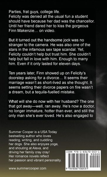 Enjoy this steamy fake marriage second chance romance by USA Today Bestselling billionaire contemporary romance author Summer Cooper! Felicity's ordinary life in a quiet town takes an unexpected turn when Finn shows up at her doorstep, seeking a divorce. Dr. Finn Makenzie is set to marry in a few days, and his fiancée is not too pleased with the situation, pressuring him to finalize the divorce quickly. You'd think divorce proceedings would be straightforward, but here's the thing-it's Christmas time, and delays are bound to happen. Adding to the mix, Finn still has feelings for Felicity, the…mehr