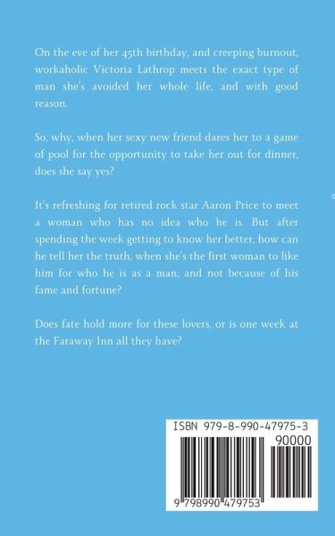 One week, one irresistible mistake, and two people forced to choose between safe independence and a love that refuses to be anonymous. Victoria Lathrop built a life by the numbers: a thriving social-media firm, a spotless apartment, and a fierce independence she's never regretted, until a week in the Berkshires reawakens the artist she buried ten years ago. Drawn to the Faraway Inn for a curated chance to make and to breathe, she expects nothing more than paint-splattered amusement and the occasional awkward charcoal sketch. Aaron Price is a man trying to live smaller than his past. Once a world-famous guitarist, he's traded arenas for quiet, helping his daughter scope out a cozy inn she might turn into a future. When he walks into Victoria's week-warm, witty, and deliberately unnamed-their chemistry is instant and complicated. He's everything her mother warned her against; he's also the missing piece she didn't know she was searching for. As a week of art classes, late-night conversation, and reckless sex accelerates into something tender and true, both must confront the question neither expected: can two people with very different pasts build something lasting, or will truth and fear send them back to the lives they thought they wanted?