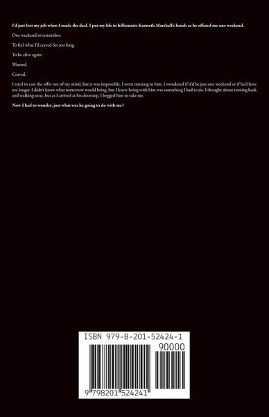 I'd just lost my job when I made the deal. I put my life in billionaire Kenneth Marshall's hands as he offered me one weekend. One weekend to remember. To feel what I'd craved for too long. To be alive again. Wanted. Craved. I tried to cast the offer out of my mind, but it was impossible. I went running to him. I wondered if it'd be just one weekend or if he'd have me longer. I didn't know what tomorrow would bring, but I knew being with him was something I had to do. I thought about turning back and walking away, but as I arrived at his doorstep, I begged him to take me. Now I had to wonder, just what was he going to do with me?