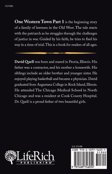 One Western Town Part 1 is the beginning story of a family of lawmen in the Old West. The tale starts with the patriarch as he struggles through the challenges of justice in war. Guided by his faith, he tries to find his way in a time of trial. This is a book for readers of all ages.