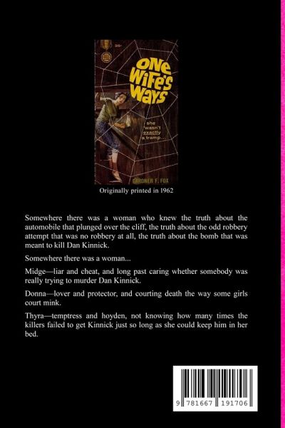 Originally printed in 1980. This is a New Edition rePrint by the Gardner Francis Fox Library LLC. This story is about...Somewhere there was a woman who knew the truth about the automobile that plunged over the cliff, the truth about the odd robbery attempt that was no robbery at all, the truth about the bomb that was meant to kill Dan Kinnick. Somewhere there was a woman... Midge-liar and cheat, and long past caring whether somebody was really trying to murder Dan Kinnick. Donna-lover and protector, and courting death the way some girls court mink. Thyra-temptress and hoyden, not knowing how many times the killers failed to get Kinnick just so long as she could keep him in her bed.