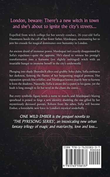 London, beware: There's a new witch in town and she's about to ignite the city's streets... Expelled from witch college for her unruly conduct, 26-year-old Sofia Hausmann heeds the call of her foster father, Mardequai, summoning her to join his crusade for magical dominance over humanity in London. An ancient druid of immense power, Mardequai isn't exactly disappointed by Sofia's expulsion- quite the opposite. He's elated to witness his protégé's transformation into a fearsome (yet slightly unhinged) witch with an insatiable hunger to immerse herself in the city's underworld. Plunging into shady Shoreditch alleys and grubby Soho clubs, Sofia embraces her darkness, fanning the flames of her burgeoning magical prowess. Her reputation spreads like wildfire, and Mardequai knows exactly how to harness it from the shadows. Naturally, Sofia is aware she's a pawn in his game, yet the leash is long enough to let her revel in the chaos she craves... But every symbolic figure needs a name to match, and Mardequai's blazing spearhead is poised to forge a new identity, shedding the one gifted by her mysteriously deceased parents. Reborn from the ashes, Sofia will become Ember, a formidable new force in London's mystical underbelly... ONE WILD EMBER is the prequel novella to 'THE PYRESONG SERIES', an intoxicating new urban fantasy trilogy of magic and matriarchy, love and loss...