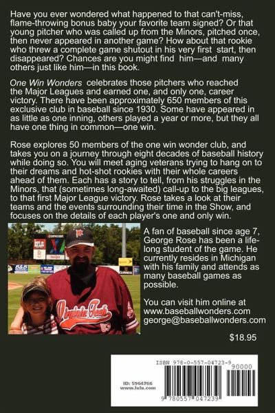 One Win Wonders celebrates those pitchers who reached the Major Leagues and earned one, and only one, career victory. There have been approximately 650 members of this exclusive club in baseball since 1930. Some have appeared in as little as one inning, others played a year or more, but they all have one thing in common-one win. Rose Explores 50 members of the one win wonder club, and takes you on a journey through eight decades of baseball history while doing so. You will meet aging veterans trying to hang on to their dreams and hot-shot rookies with their whole careers ahead of them. Each has a story to tell, from his struggles in the Minors, that (sometimes long-awaited) call-up to the big leagues, to that first Major League victory. Rose takes a look at their teams and the events surrounding their time in the Show, and focuses on the details of each player's one and only win.