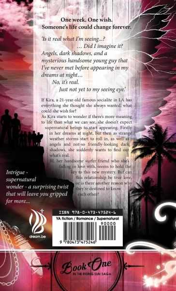 intrigue - supernatural wonder - a surprising twist that will leave you gripped for more... If Kira, a 21-year-old famous socialite in LA has everything she thought she always wanted, what could she wish for? As Kira starts to wonder if there's more meaning to life than what we can see, she doesn't expect supernatural beings to start appearing. Firstly in her dreams at night, but then as strange weather storms start to roll in, as well as angels and not-so friendly-looking dark shadows, she suddenly wants to find out what's real. BJ, her handsome surfer friend who she's falling in love with, seems to hold the key to this new mystery. But can this relationship be true love, or is there another reason why they're destined to know each other? Rising Sun Saga - be absorbed and get lost in the romantic and supernatural world of this compelling series with thrilling supernatural occurrences interwoven in Kira's and her friends dreams and real life.