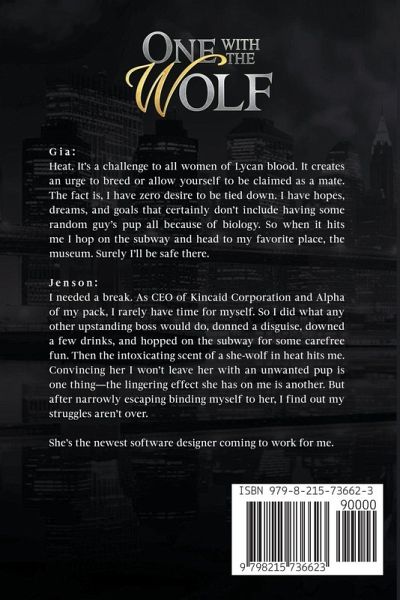 Gia: Heat. It's a challenge to all women of Lycan blood. It creates an urge to breed or allow yourself to be claimed as a mate. The fact is, I have zero desire to be tied down. I have hopes, dreams, and goals that certainly don't include having some random guy's pup all because of biology. So when it hits me I hop on the subway and head to my favorite place, the museum. Surely I'll be safe there. Jenson: I needed a break. As CEO of Kincaid Corporation and Alpha of my pack, I rarely have time for myself. So I did what any other upstanding boss would do, donned a disguise, downed a few drinks, and hopped on the subway for some carefree fun. Then the intoxicating scent of a she-wolf in heat hits me. Convincing her I won't leave her with an unwanted pup is one thing-the lingering effect she has on me is another. But after narrowly escaping binding myself to her, I find out my struggles aren't over. She's the newest software designer coming to work for me.
