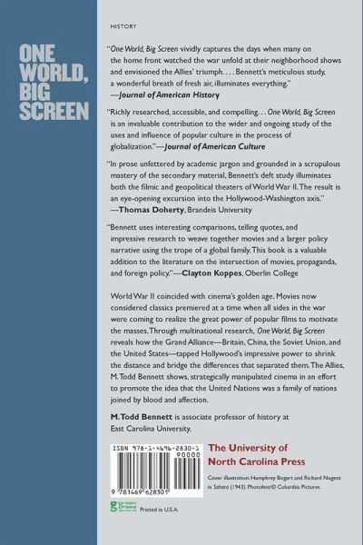 World War II coincided with cinema’s golden age. Movies now considered classics were created at a time when all sides in the war were coming to realize the great power of popular films to motivate the masses. Through multinational research, One World, Big Screen reveals how the Grand Alliance — Britain, China, the Soviet Union, and the United States — tapped Hollywood’s impressive power to shrink the distance and bridge the differences that separated them. The Allies, M. Todd Bennett shows, strategically manipulated cinema in an effort to promote the idea that the United Nations was a family of nations joined by blood and affection. Bennett revisits Casablanca, Mrs. Miniver, Flying Tigers, and other familiar movies that, he argues, helped win the war and the peace by improving Allied solidarity and transforming the American worldview. Closely analyzing film, diplomatic correspondence, propagandists' logs, and movie studio records found in the United States, the United Kingdom, and the former Soviet Union, Bennett rethinks traditional scholarship on World War II diplomacy by examining the ways that Hollywood and the Allies worked together to prepare for and enact the war effort.