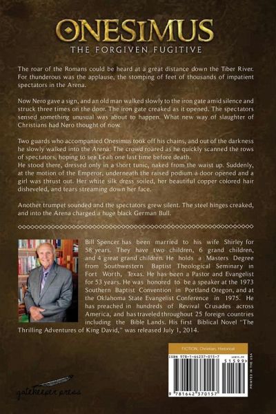 The setting is in Rome 64-68 AD. Onesimus is a runaway slave from Colosse. The roar of the Romans could be heard at a great distance down the Tiber River. For thunderous was the applause, the stopping of feet of thousands of impatient spectators in the Arena. Now Nero gave a sign, and an old man walked slowly to the iron gate amid silence and struck three times on the door. The iron gate creaked as it opened. What new way of slaughter of Christians had Nero thought of now.
