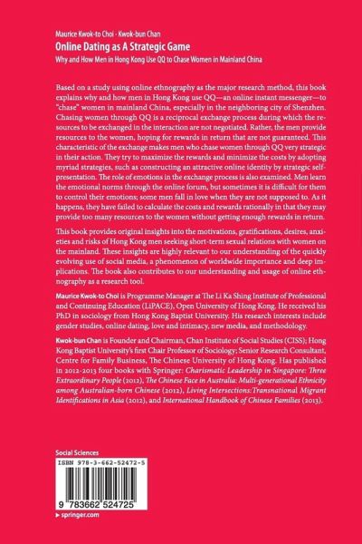 Based on a study using online ethnography as the major research method, this book explains why and how men in Hong Kong use QQ-an online instant messenger-to "chase" women in mainland China, especially in the neighboring city of Shenzhen. Chasing women through QQ is a reciprocal exchange process during which the resources to be exchanged in the interaction are not negotiated. Rather, the men provide resources to the women, hoping for rewards in return that are not guaranteed. This characteristic of the exchange makes men who chase women through QQ very strategic in their action. They try to maximize the rewards and minimize the costs by adopting myriad strategies, such as constructing an attractive online identity by strategic self-presentation. The role of emotions in the exchange process is also examined. Men learn the emotional norms through the online forum, but sometimes it is difficult for them to control their emotions; some men fall in love when they are not supposed to. As it happens, they have failed to calculate the costs and rewards rationally in that they may provide too many resources to the women without getting enough rewards in return.